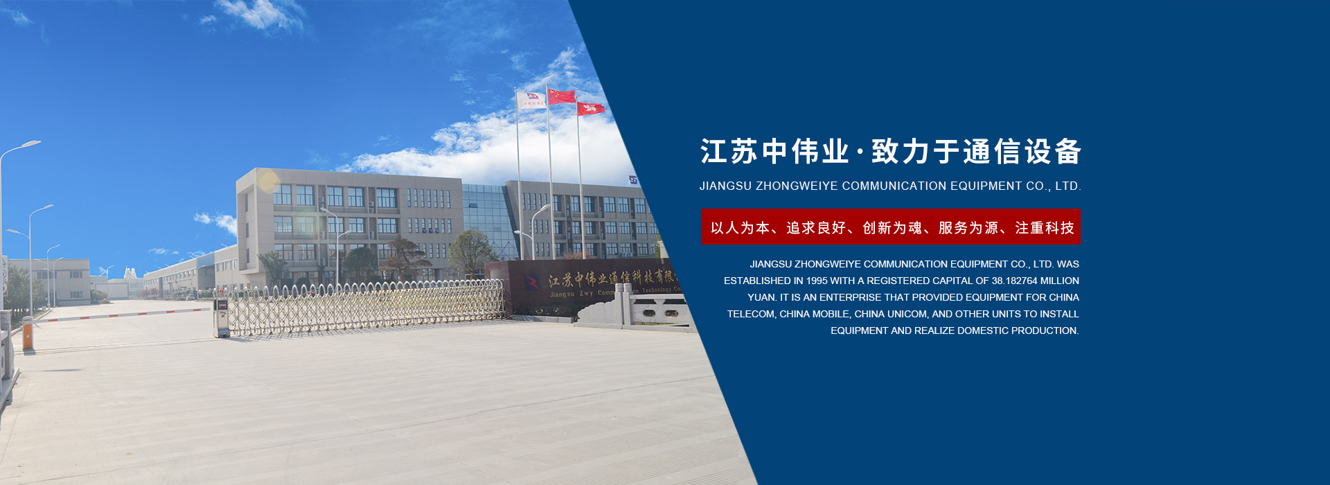 江蘇中偉業(yè)通訊設(shè)備有限公司創(chuàng)建于1995年,注冊資本為3818.2764萬元,是我國較早為華為、中國電信、中國移動、中國聯(lián)通等單位供應(yīng)機站安裝材料的公司,并與其建立了長久穩(wěn)定的合作關(guān)系。